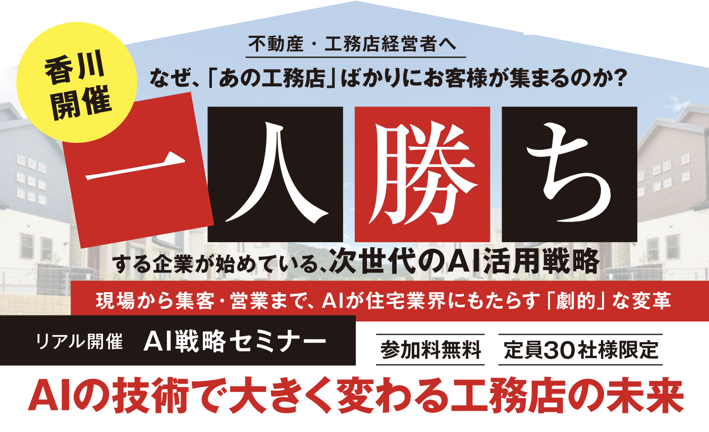住宅業界を取り巻く環境が厳しさを増す中、お客様の行動変容により「これまでの集客・営業手法」が通用しなくなってきています。一方で、AI技術の進化は目覚ましく、いまや大手企業だけでなく、住宅業全体で活用すべき強力な武器となりました。